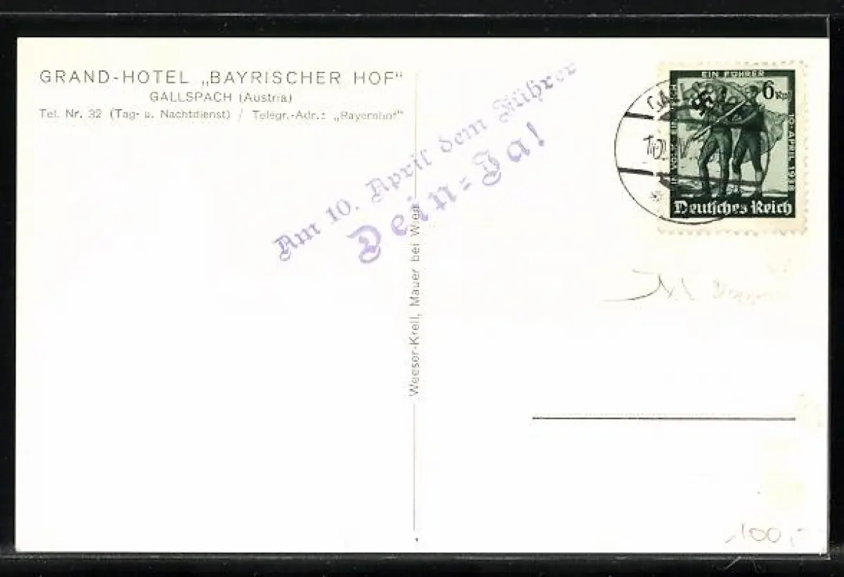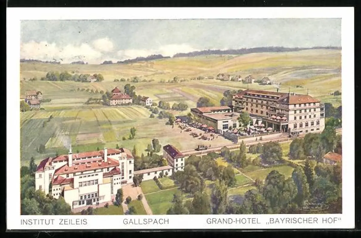 AK Gallspach, Institut Zeileis und Grand-Hotel Bayrischer Hof mit Strasse aus der Vogelschau