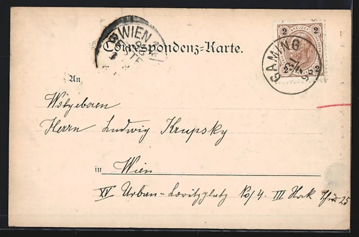 alte Ansichtskarte, gelaufen 1898, Eckknick li. unten, Stempelspur, guter Zustand