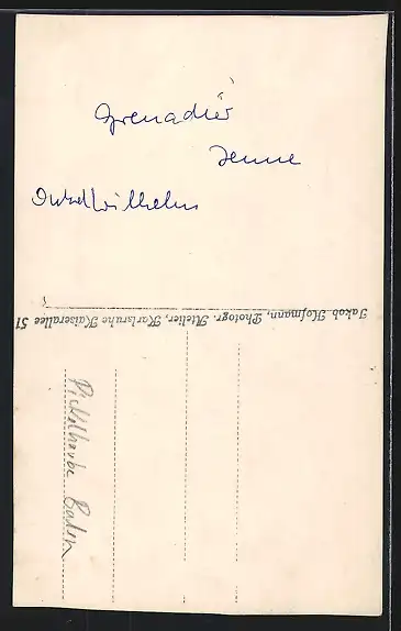 Personenbezogene Daten auf der Rückseite der Karte wurden durch blauen Textmarker unkenntlich gemacht. Die blauen Stellen sind auf die Vorderseite durchgeweicht und wirken sich negativ auf das Postkartenfoto aus