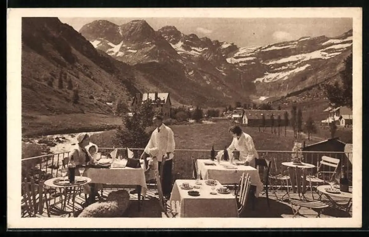 AK Gavarnie, Vue prise de la terrasse du Restaurant du Point de vue de la Cascade