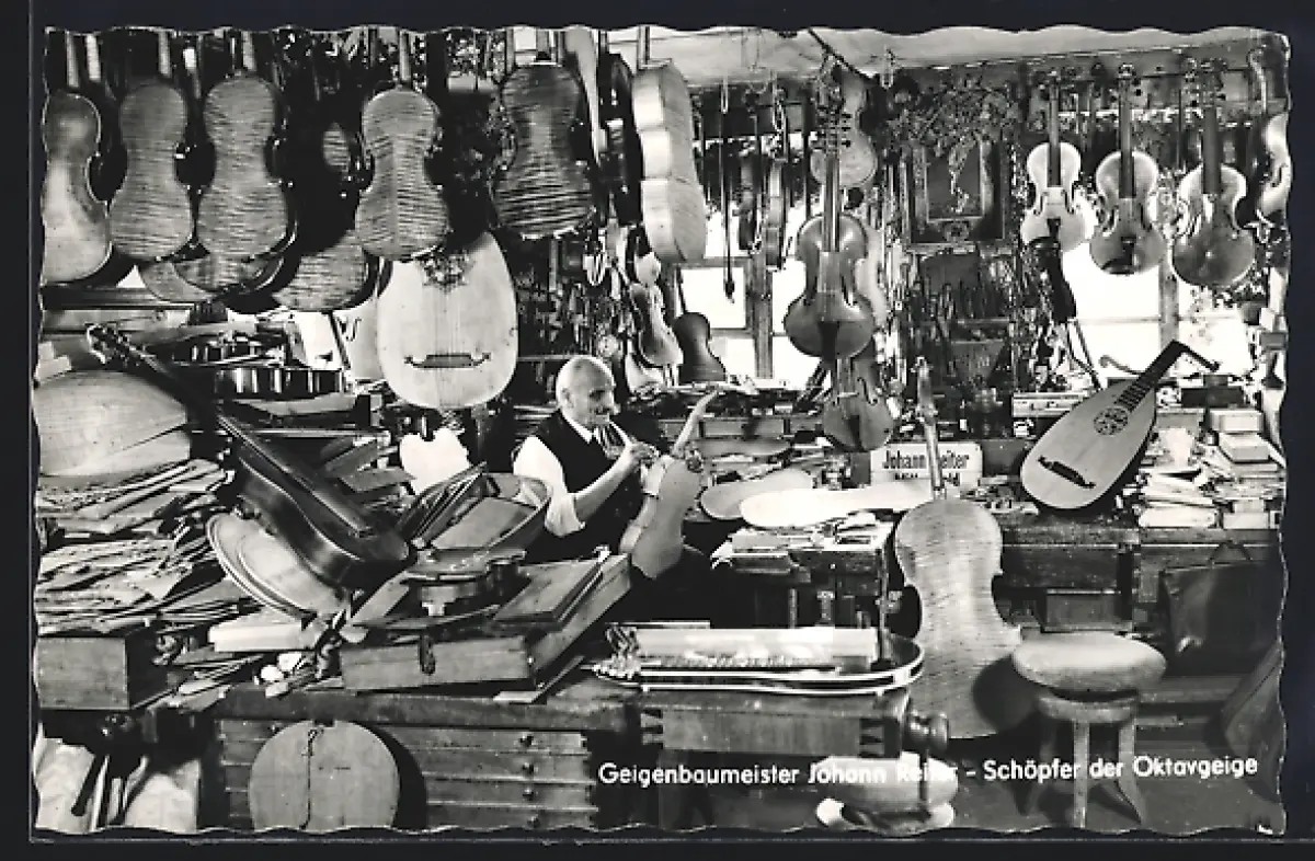 AK Geigenbaumeister Johann Reiter in seiner Werkstatt, Schöpfer der Oktavgeige