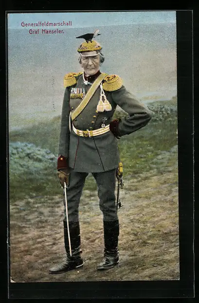 AK Generalfeldmarschall Graf Haeseler in Uniform auf dem Feld