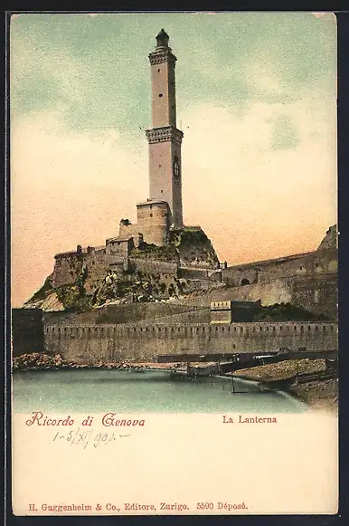 AK Genova, La Lanterna, Leuchtturm an der Küste um 1900