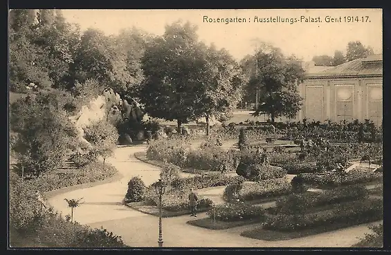 AK Gent, Ausstellung 1914-17, Rosengarten: Ausstellungs-Palast