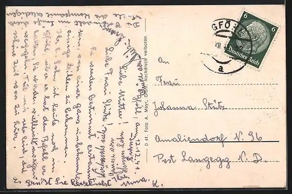 alte Ansichtskarte, gelaufen 1941, Stempelspur, guter Zustand