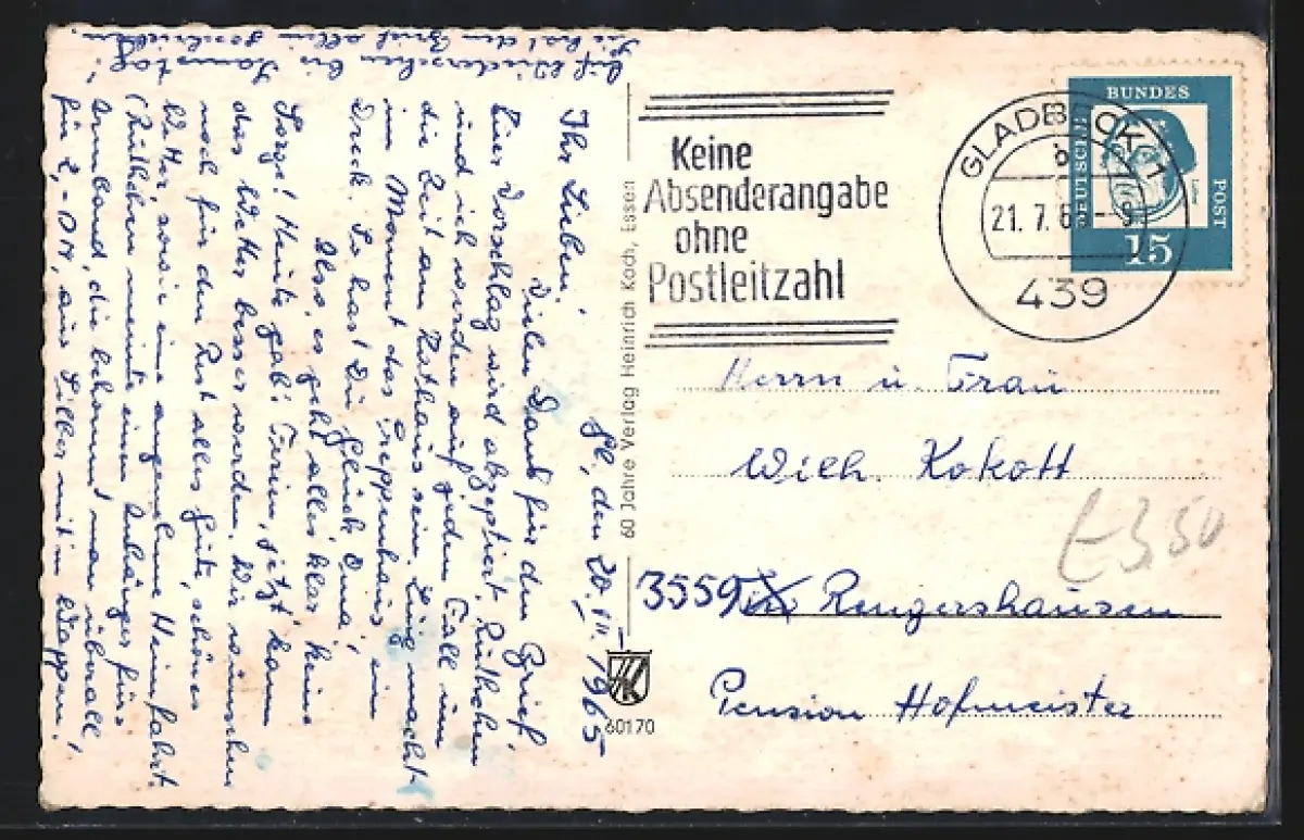 alte Ansichtskarte, gelaufen 1965, Abriebspur oben links, guter Zustand