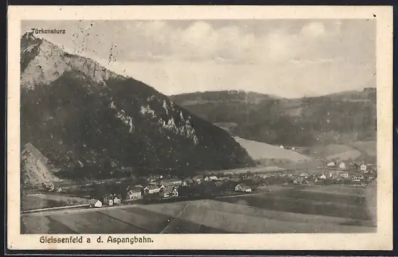 AK Gleissenfeld a.d. Aspangbahn, Ortsansicht aus der Vogelschau mit Türkensturz