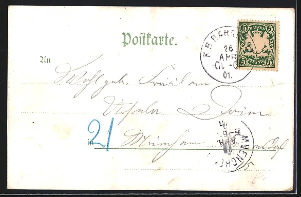 alte Ansichtskarte, gelaufen 1901, guter Zustand