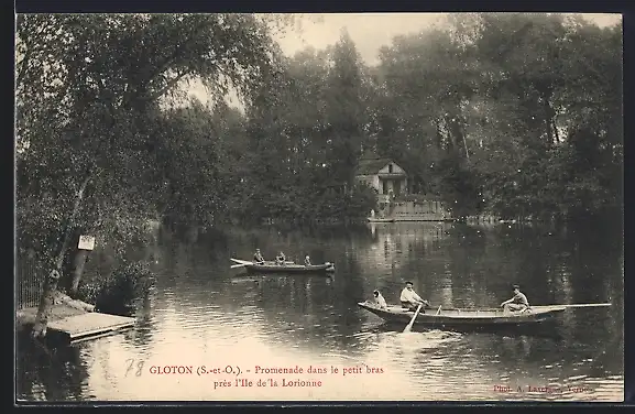 AK Gloton, Promenade dans le petit bras près l`île de la Lorioine