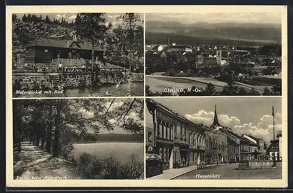 AK Gmünd, Malerwinkel mit Bad, Hauptplatz, Partie am Asangteich