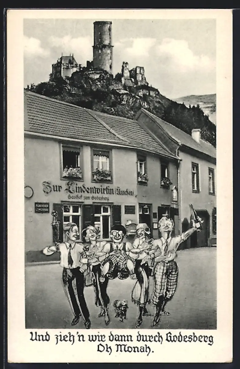 AK Godesberg, Gasthaus Zur Lindenwirtin, Blick zur Godesburg