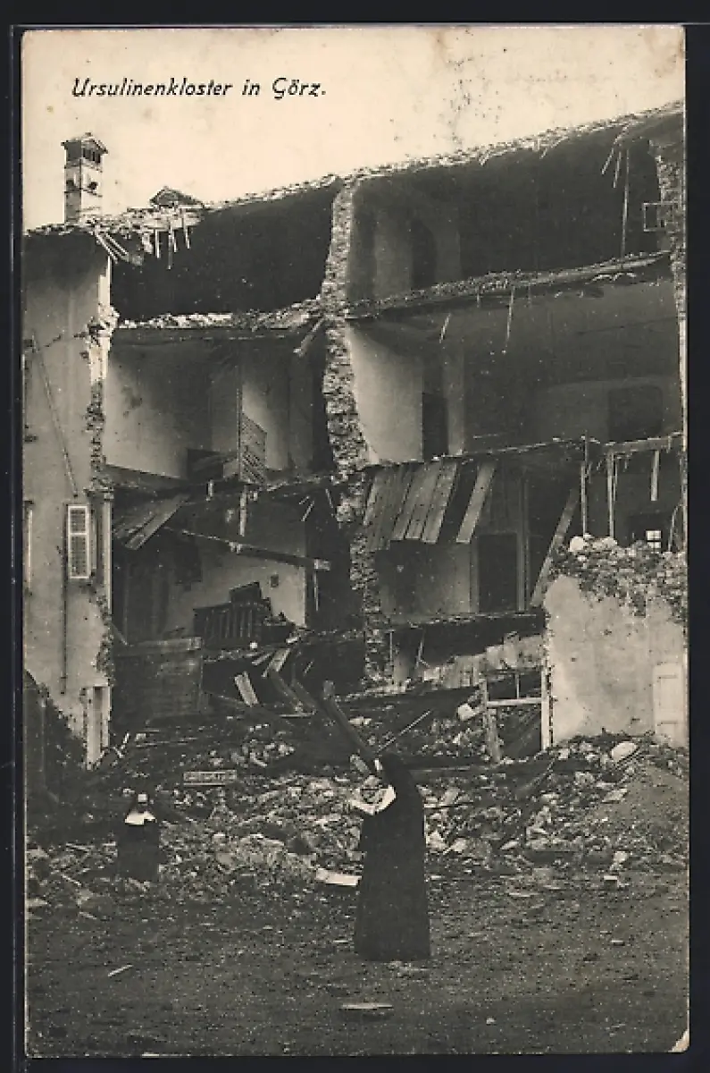 AK Görz, Nonnen vor dem zerstörten Ursulinenkloster