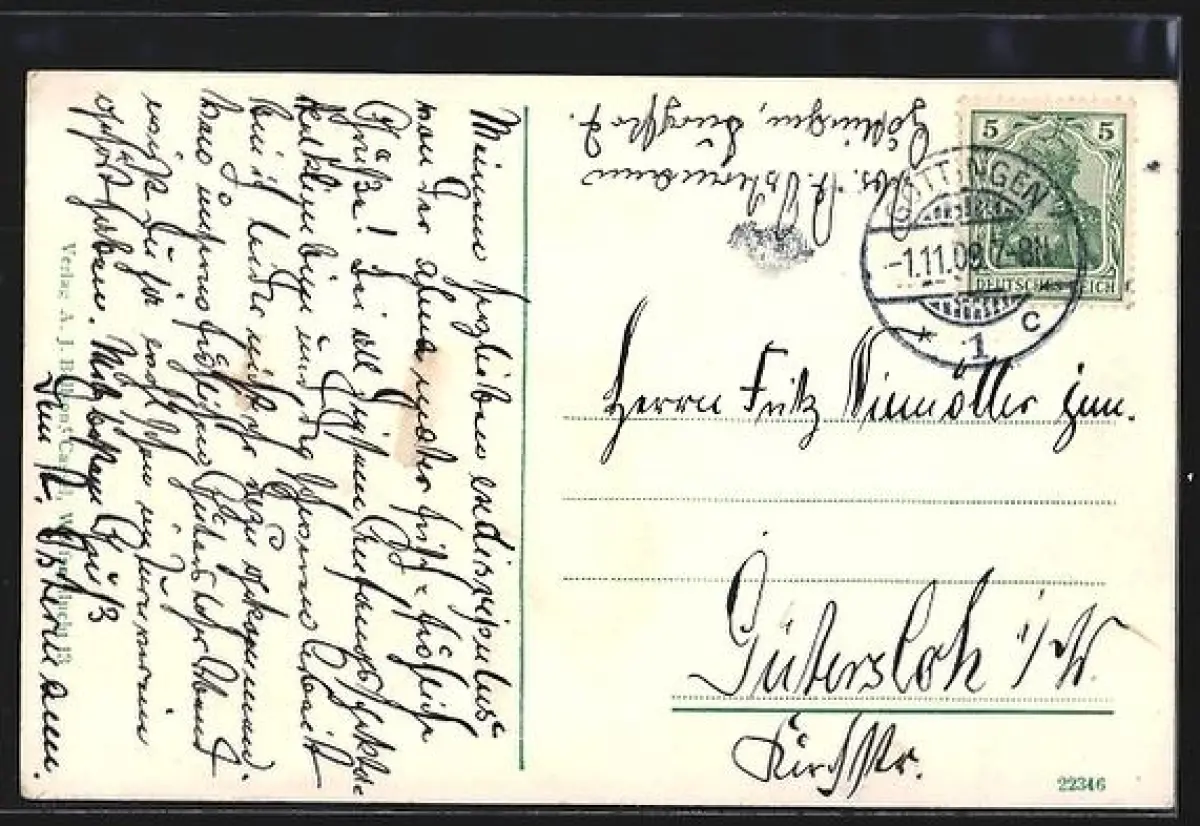 alte Ansichtskarte, gelaufen 1908, guter Zustand