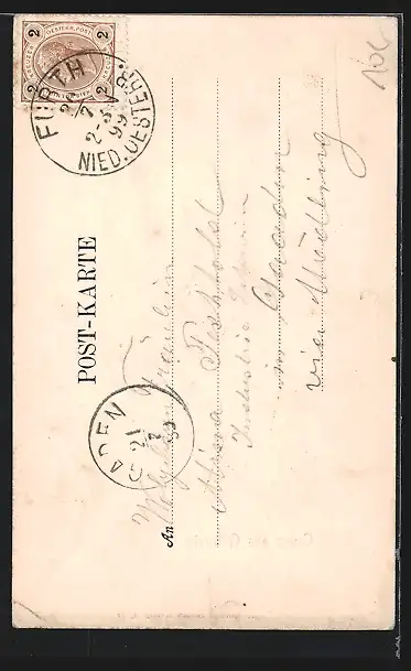 alte Ansichtskarte, gelaufen 1899, Eckknick re. unten, guter Zustand