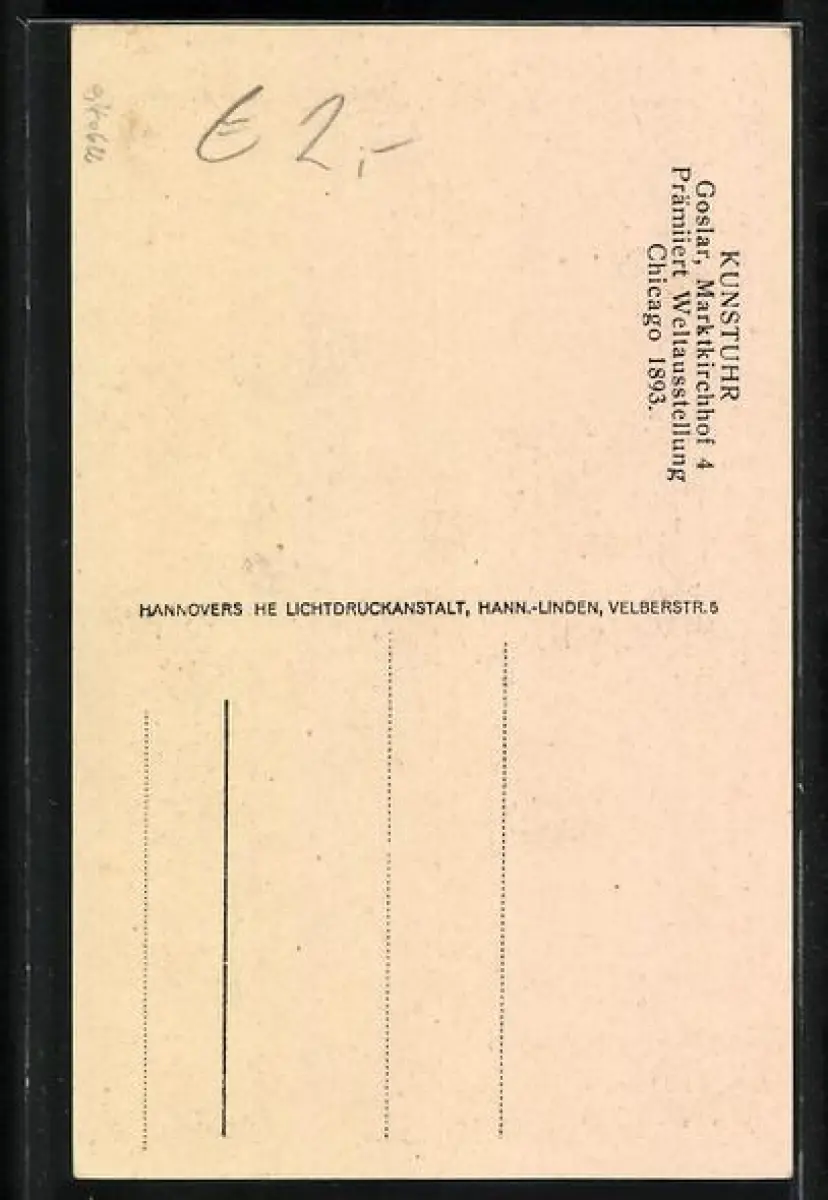 AK Goslar, Kunstuhr, Marktkirchhof 4, Prämiiert Weltausstellung Chicago 1893