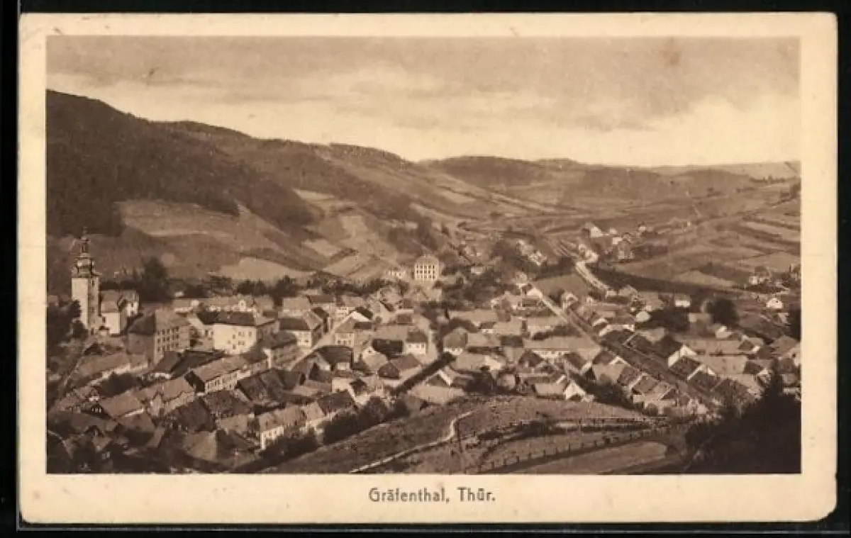 AK Gräfenthal /Thür., Ortsansicht, Kirche, umliegende Landschaft