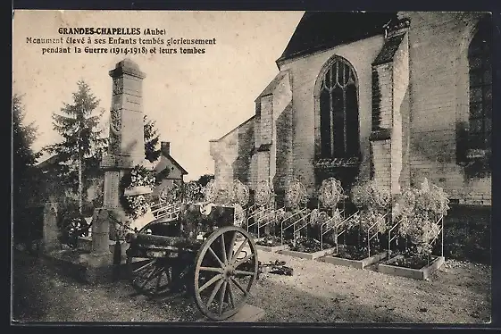 AK Grandes-Chapelles, Monument aux enfants tombés pendant la Guerre 1914-1918 et leurs tombes