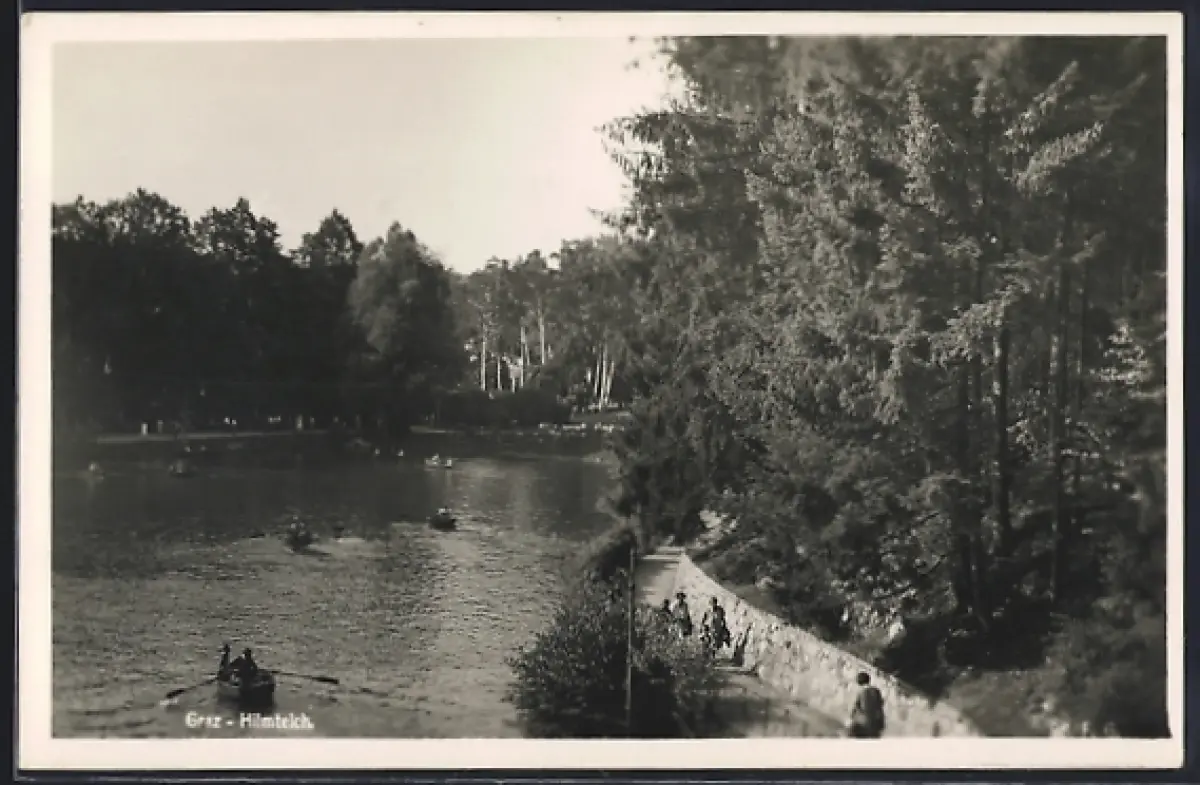AK Graz, Hilmteich mit Uferweg und Ruderbooten