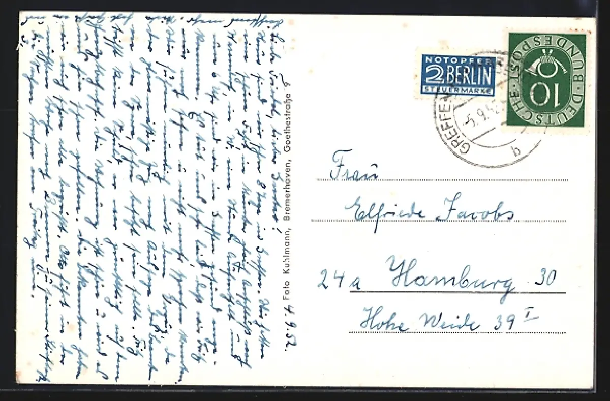 alte Ansichtskarte, gelaufen 1952, guter Zustand