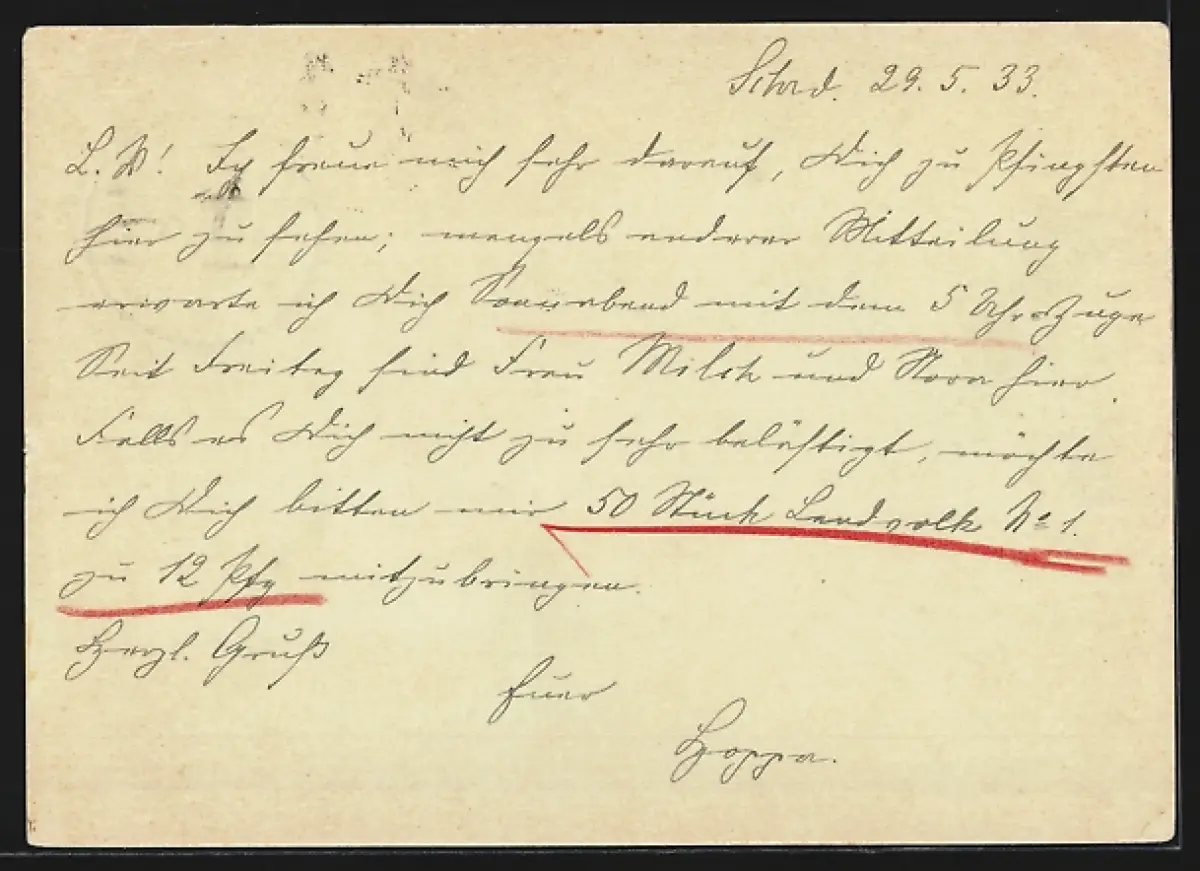 alte Ansichtskarte, gelaufen 1933, Eckknicke oben, guter Zustand
