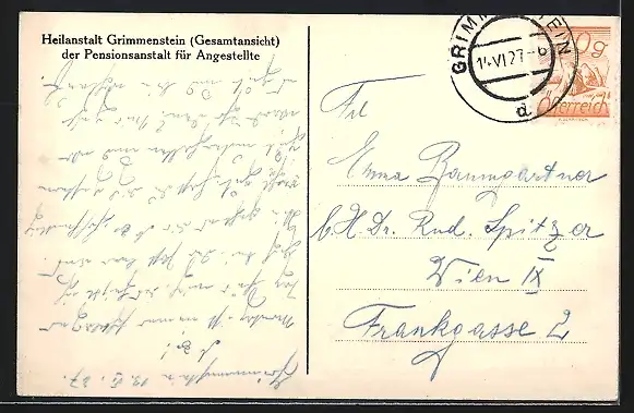 AK Grimmenstein, Heilanstalt, Pensionsanstalt für Angestellte in Wien