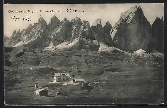 AK Grödnerjoch-Hospiz, Ansicht gegen Tschier-Spitzen