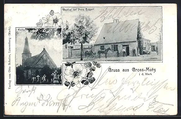 AK Gross-Mutz i. d. Mark, Kirche und Gasthof von Franz Ruppert