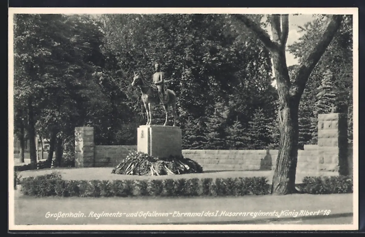 AK Grossenhain / Sachsen, Regiments- u. Gefallenen-Ehrenmal des I. Husarenrgts. König Albert 18
