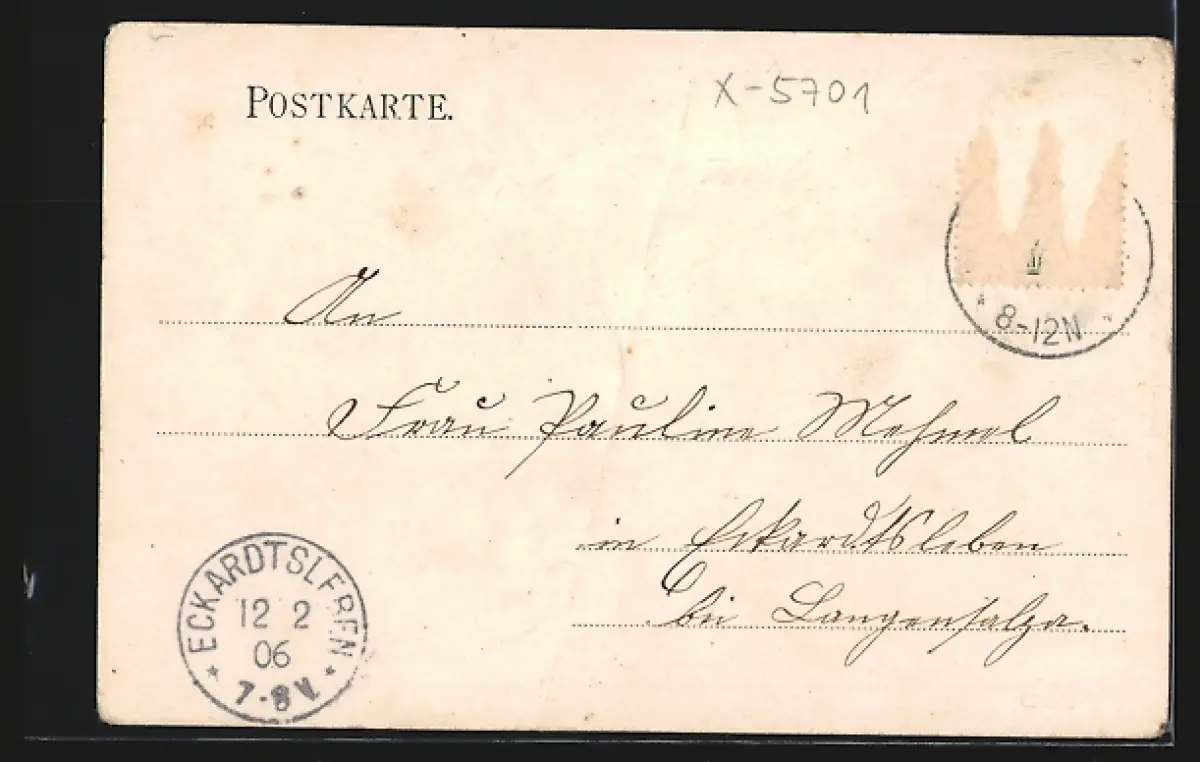 alte Ansichtskarte, gelaufen 1906, Briefmarke entfernt, rückseitig Oberflächenschaden, Bugspur mittig senkrecht, guter Zustand