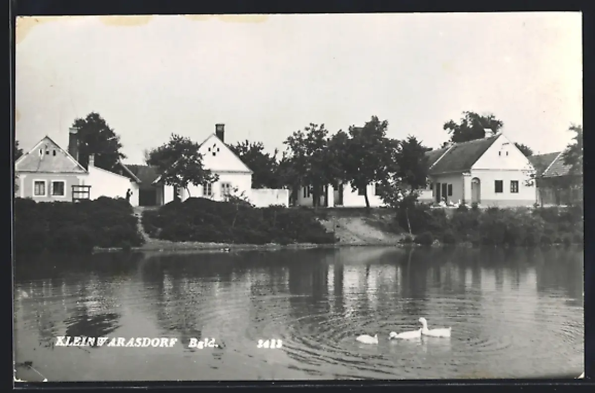 AK Grosswarasdorf, Klein Warasdorf, Häuserpanorama vom Wasser aus