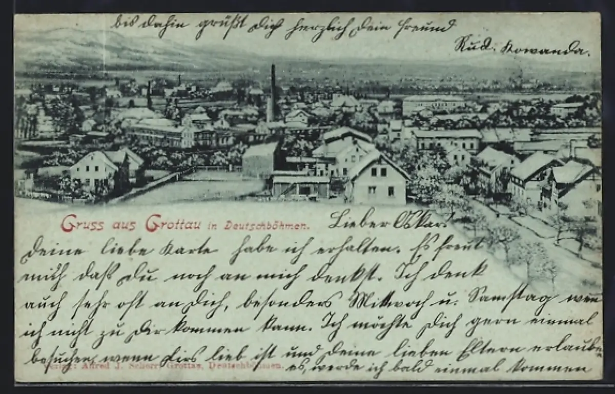 AK Grottau in Deutschböhmen, Ortsansicht aus der Vogelschau