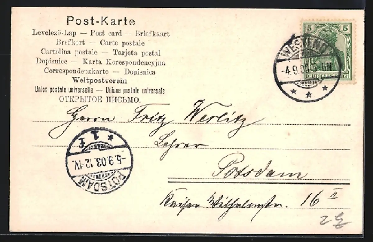 alte Ansichtskarte, gelaufen 1903, guter Zustand