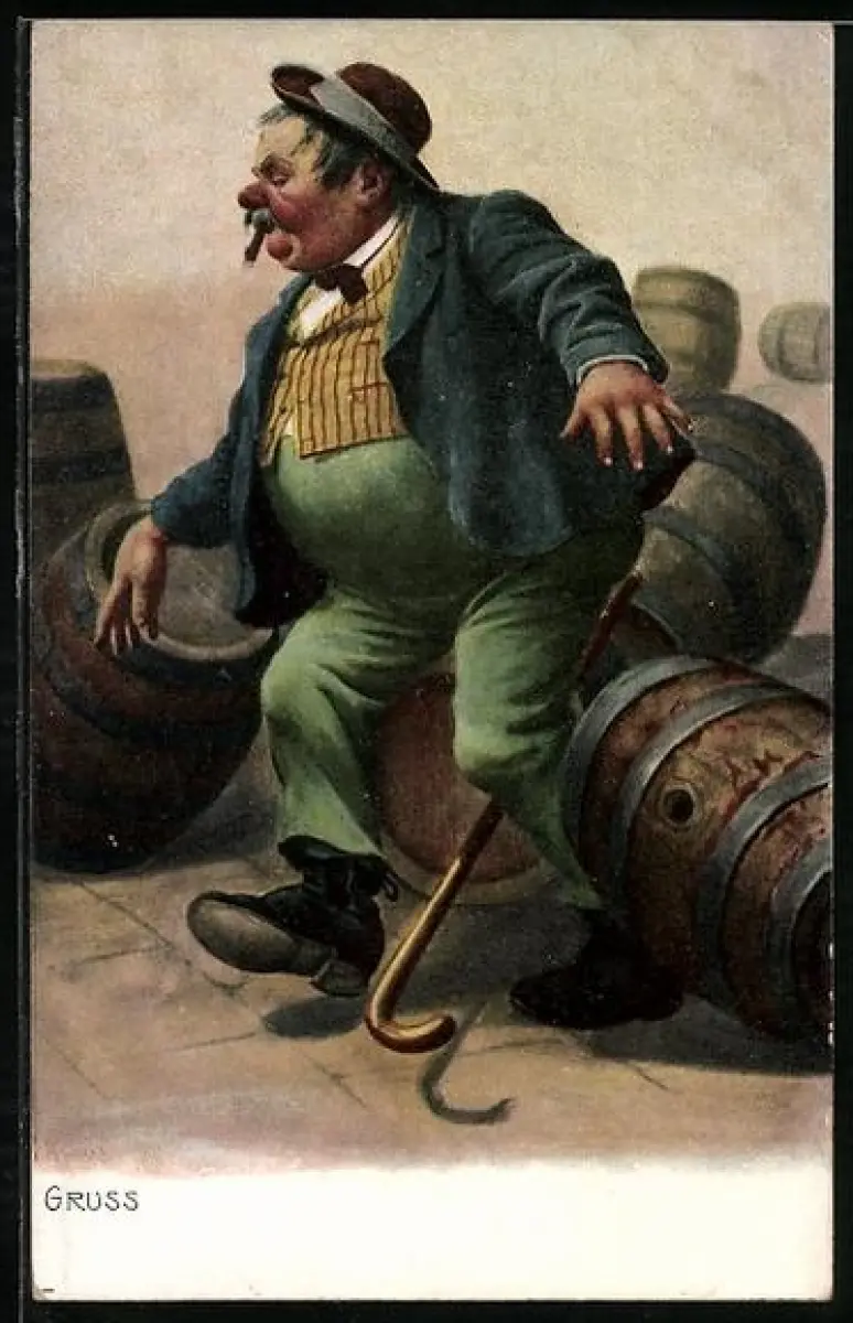 AK Gruss aus Pilsen, Scherz, Trunkenbold