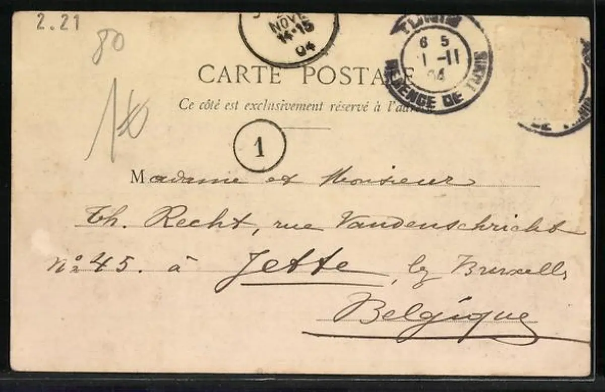 gelaufen 1904, Briefmarke entfernt, Eckknick li. oben, rückseitig Oberflächenschaden, Stempelspur, Oberflächenschaden re. unten