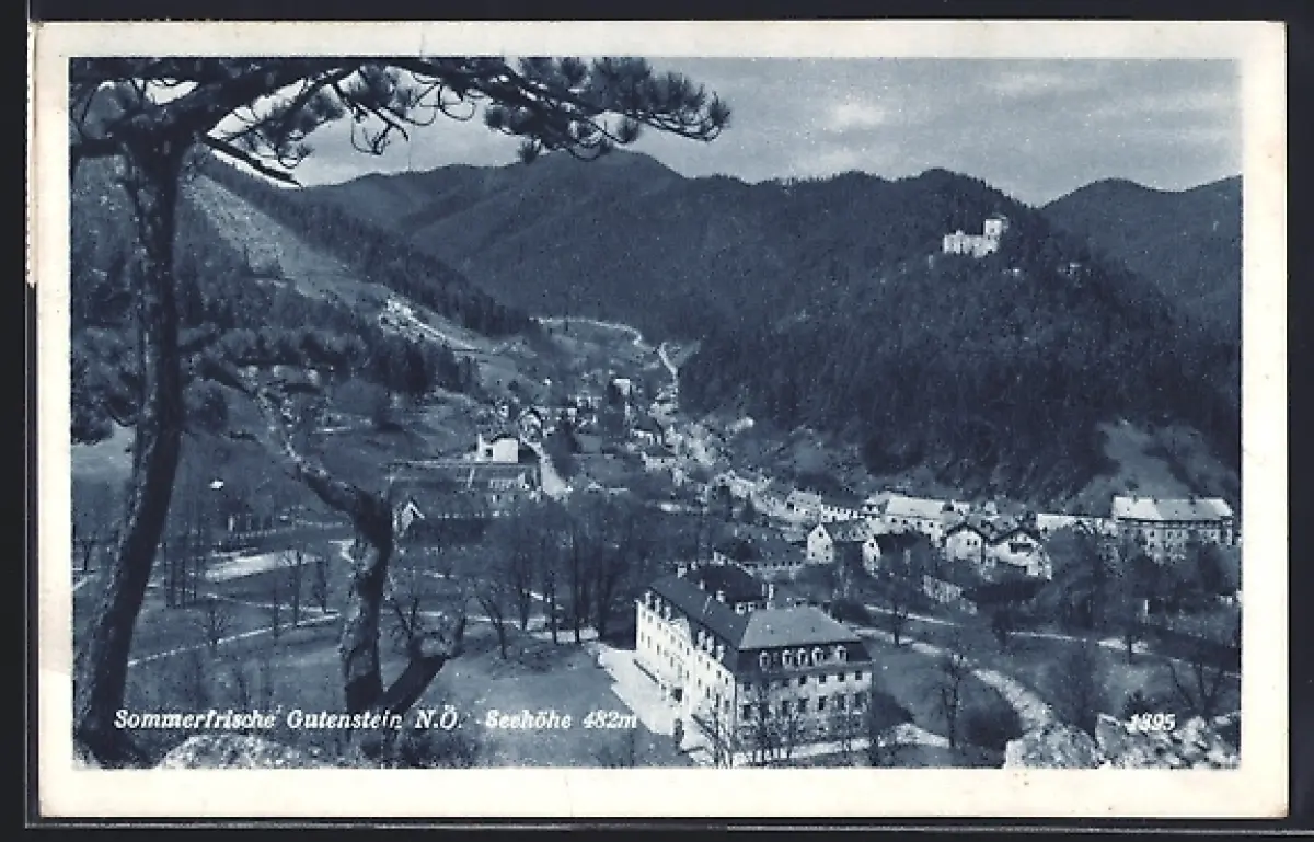 AK Gutenstein /N. Ö., Gesamtansicht mit Bergpanorama aus der Vogelschau