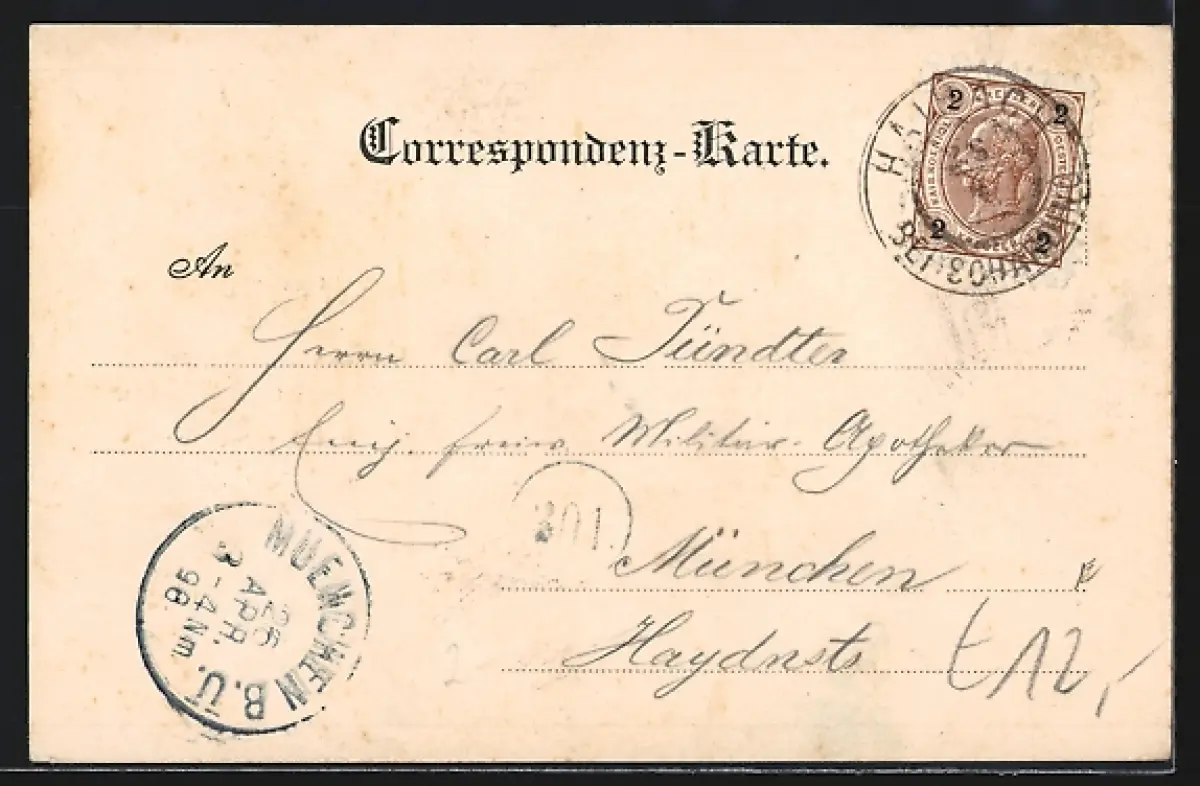 alte Ansichtskarte, gelaufen 1898, Stempelspur, guter Zustand
