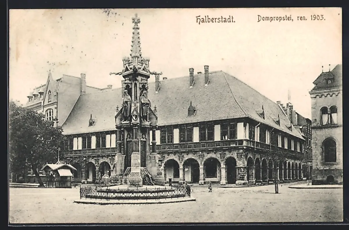 AK Halberstadt, Dompropstei mit Säulendenkmal