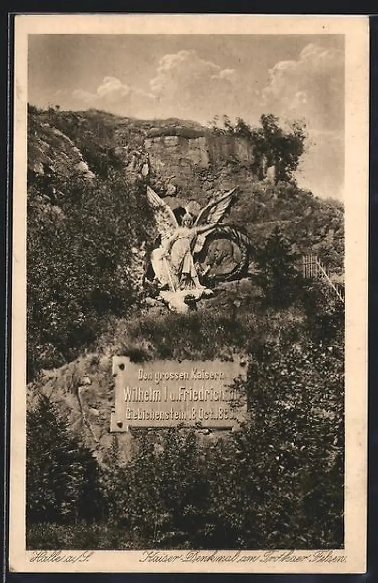 AK Halle a. S., Kaiser-Denkmal am Trothaer Felsen