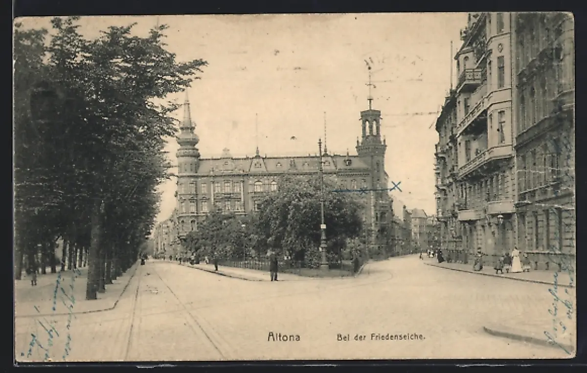 AK Hamburg-Altona, Strassenpartie bei der Friedenseiche