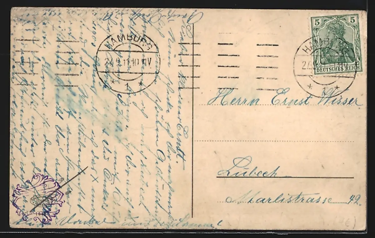 alte Ansichtskarte, gelaufen 1911, Stempelspur, guter Zustand