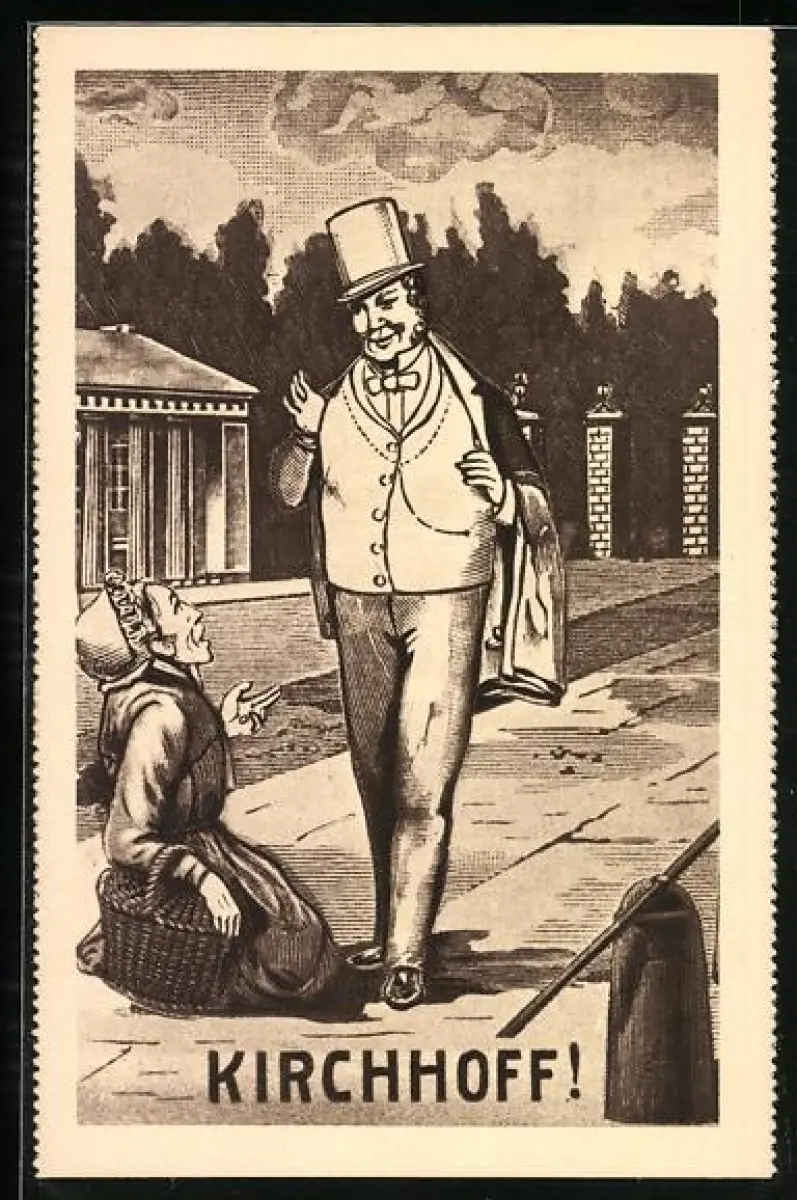 AK Hamburg, Kirchhoff, eine Frau kniet vor dem wohlhabenden Mann mit Zylinder
