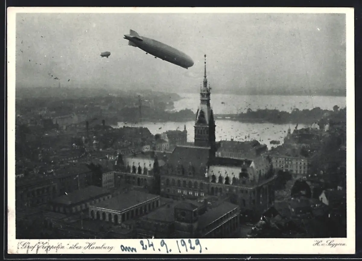 AK Hamburg, Luftschiff Graf Zeppelin über der Stadt