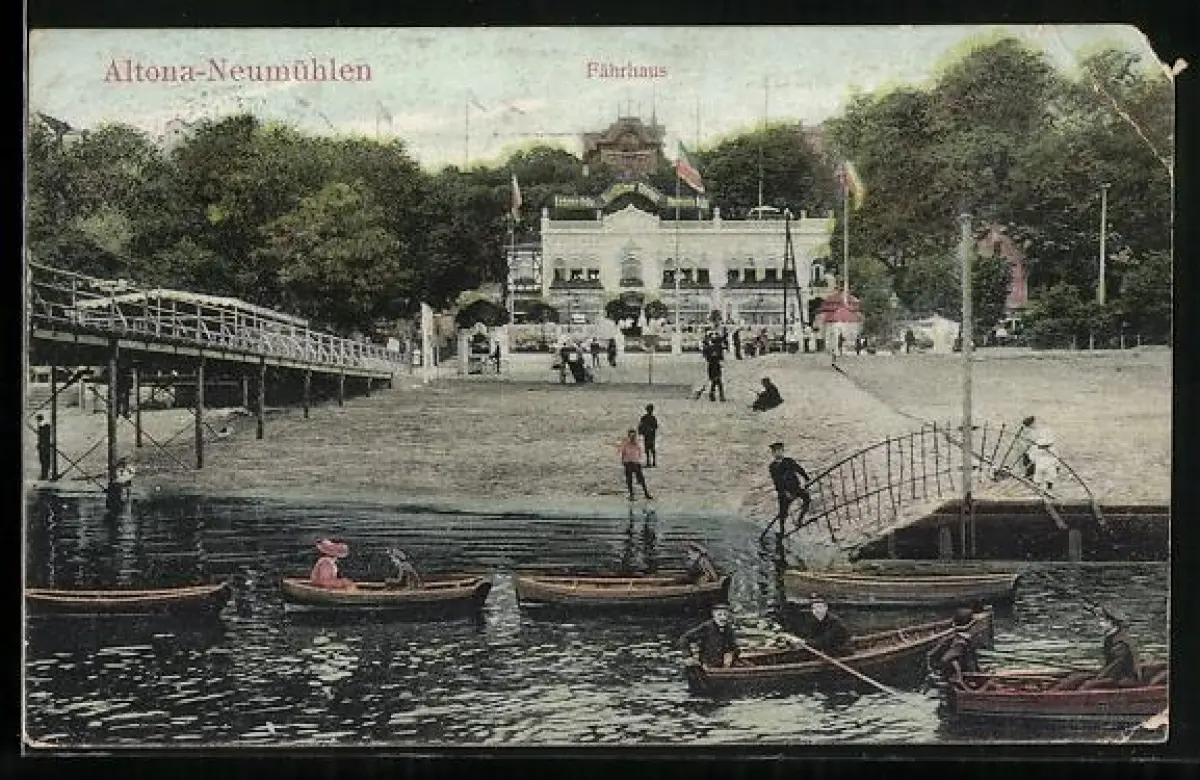 AK Hamburg-Neumühlen, Fährhaus, Bootsanleger, Elbufer