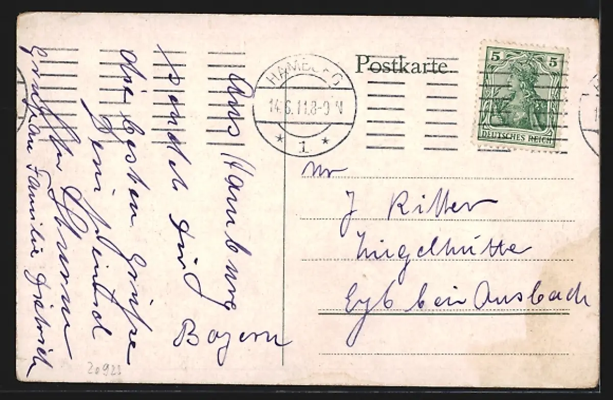 gelaufen 1911, minimaler Einriss li. unten, guter Zustand