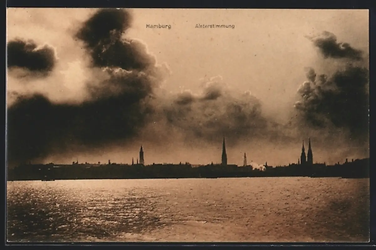 AK Hamburg-St.Georg, Abendstimmung an der Alster