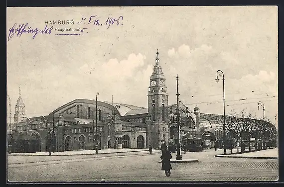 AK Hamburg-St.Georg, Strassenbahnen vor dem Hauptbahnhof