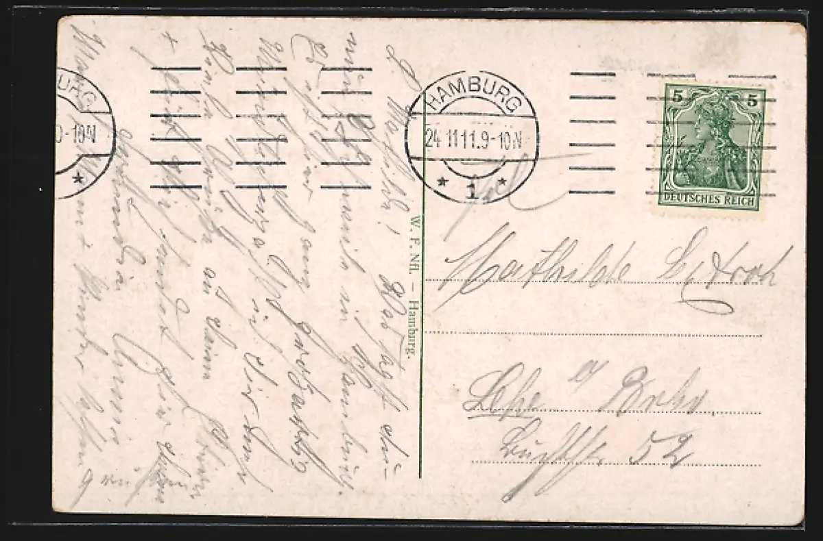 alte Ansichtskarte, gelaufen 1911, Stempelspur, guter Zustand