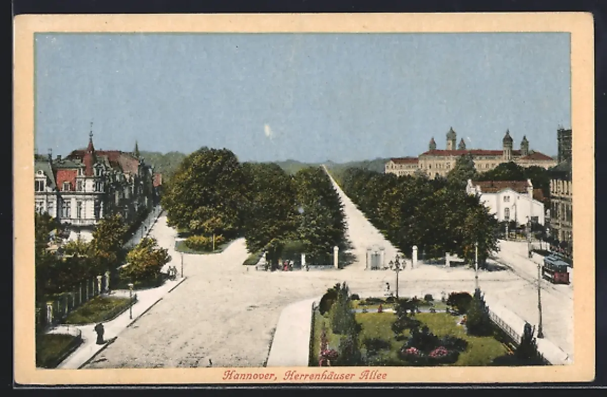 AK Hannover, Herrenhäuser Allee aus der Vogelschau
