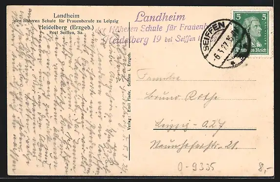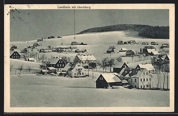 AK Heidelberg / Erzgeb., Teilansicht und Landheim mit Ahornberg im Schnee