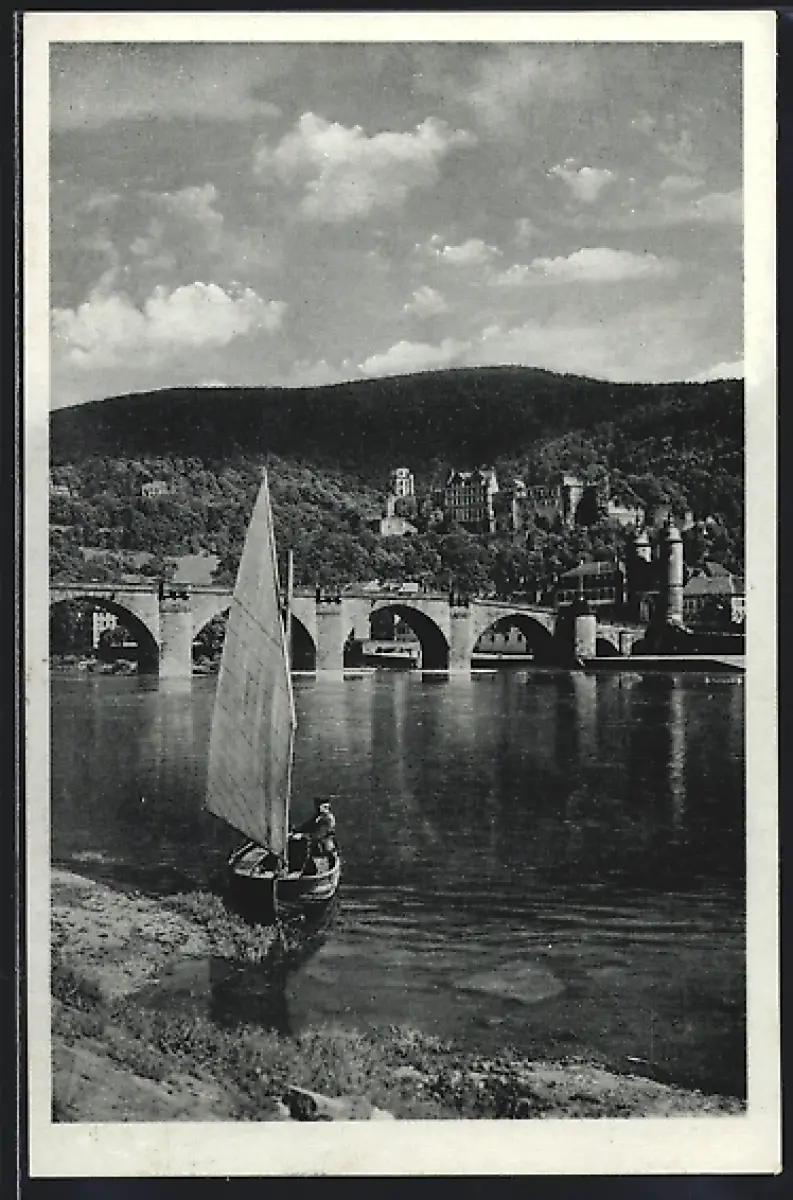AK Heidelberg, Schloss mit der Alten Neckarbrücke